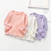 【予約商品】送料無料! キッズ ラッパスリーブトップス フリル フリルTシャツ カットソー 長袖 ロンT 女の子 可愛い かわいい リボン メロー 子供 子ども こども 韓国 出産 内祝い ギフト プレゼント 春 秋 無地 シンプル 90 100 110 120 130