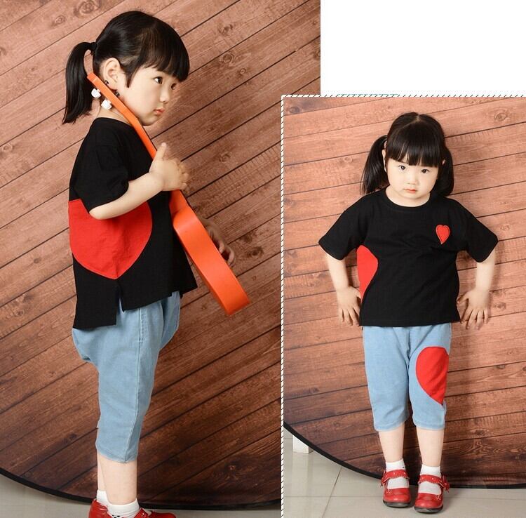 【予約商品】セットアップ ハート シャツ Tシャツ デニムパンツ ジンス 子供 韓国 子ども服 女の子 男の子 キッズ用 ジュニア ズボンボトム
