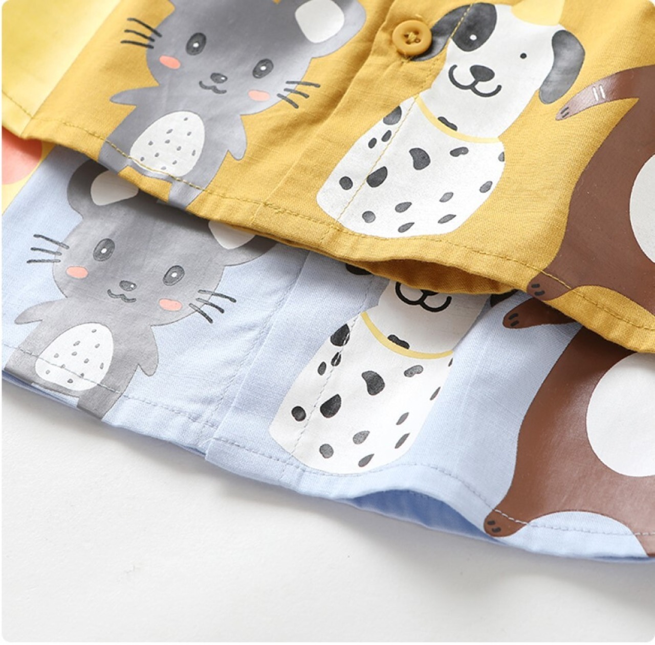 大人っぽいイメージの襟付きシャツにアニマルたちが子どもの可愛らしさを演出♪
