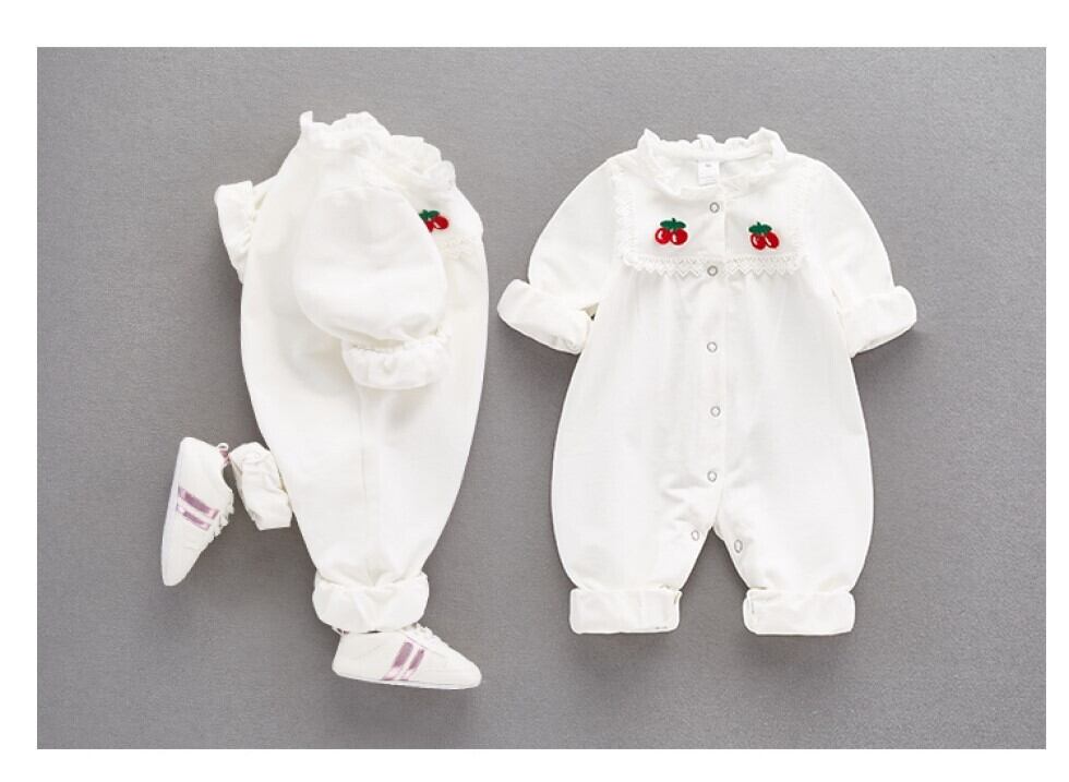 【予約商品】送料無料 ロンパース カバーオール 赤ちゃん 新生児 長袖 フリル レース 刺繍 女の子 可愛い 長袖 出産準備 退院準備 出産祝い コットン 春秋 肌着 ベビードレス ガールズ お出かけ パジャマ 幼児