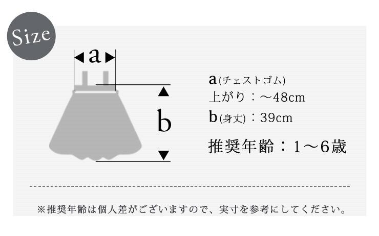 サイズ:ワンサイズ チェストゴム上がり:〜48cm 丈:39cm 0~6歳