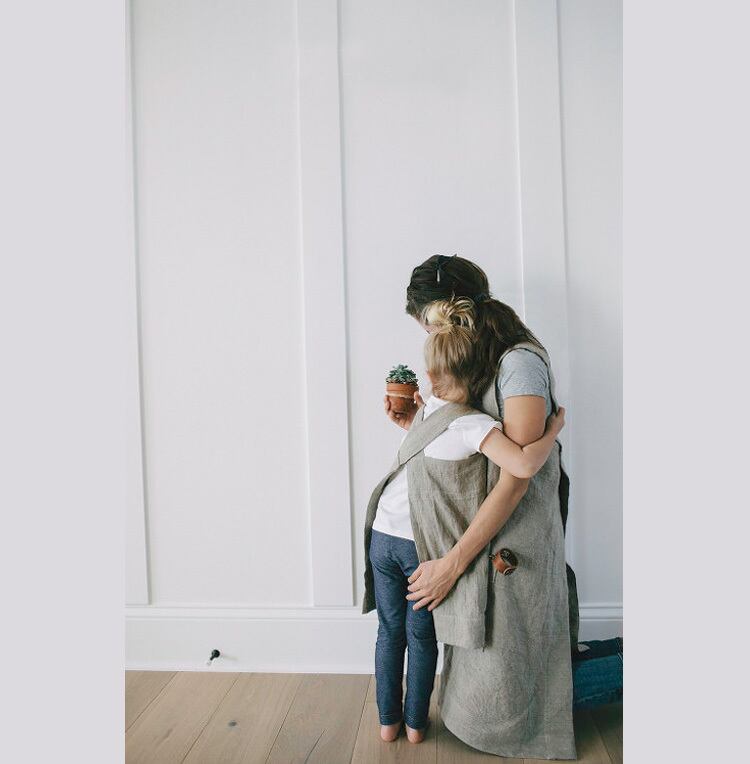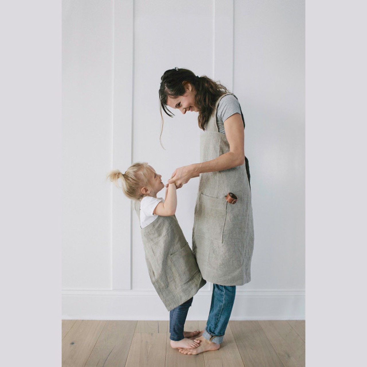 エプロンの型の中でもシンプルでお子様でも着脱しやすいスクエア型を採用。