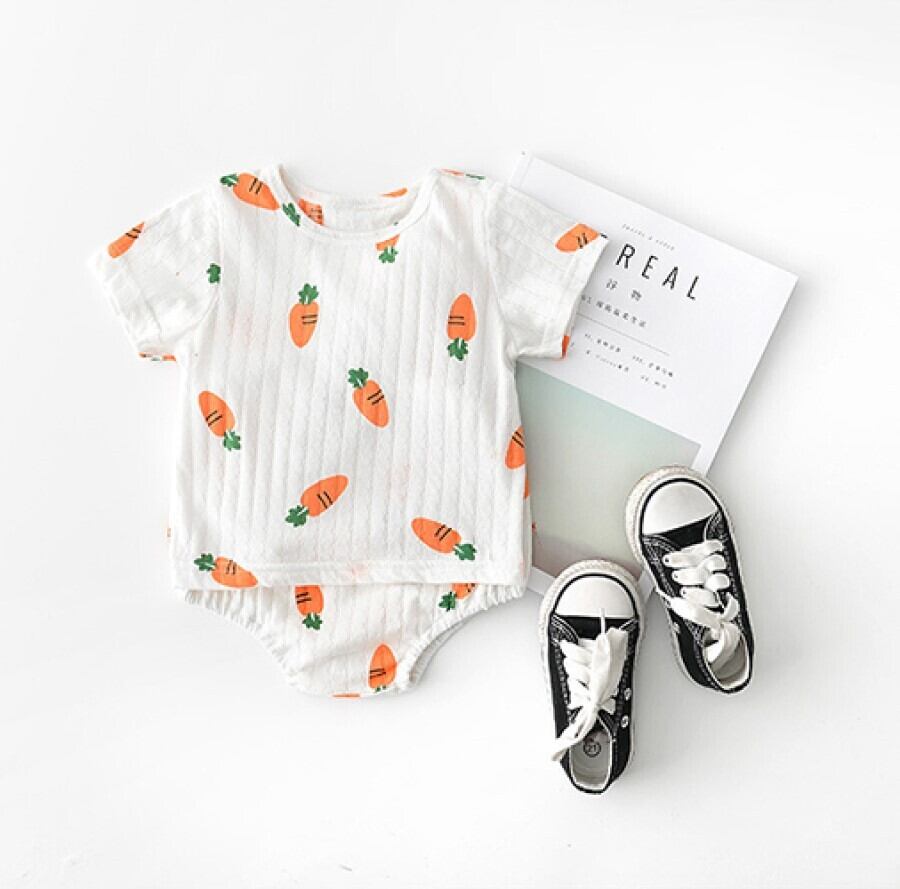 子供服 ベビー セットアップ 綿 にんじん柄 部屋着 可愛い 赤ちゃん ユニセックス Tシャツ+パンツ 上下セット 女の子 男の子 2点セット 夏 半袖 ホーム アウト 快適韓国子供服 ベビー セットアップ 綿 にんじん柄 部屋着 可愛い 赤ちゃん ユニセックス Tシャツ+パンツ 上下セット 女の子 男の子 2点セット 夏 半袖 ホーム アウト 快適 73 80 90 100 110cm
