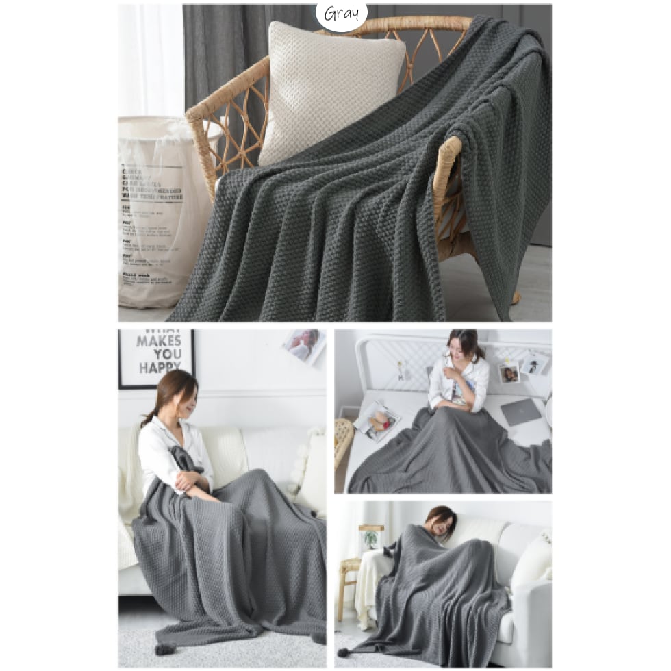 やわらかいニット素材のブランケットは、少し肌寒いと感じる時に可愛く羽織ったりひざ掛けに♪