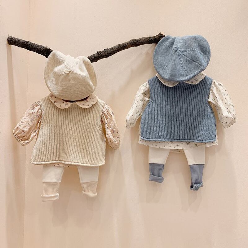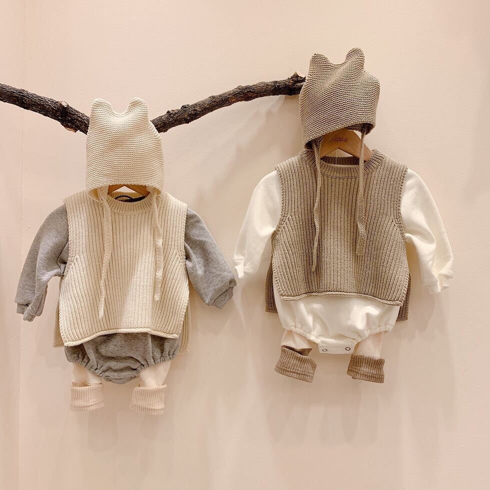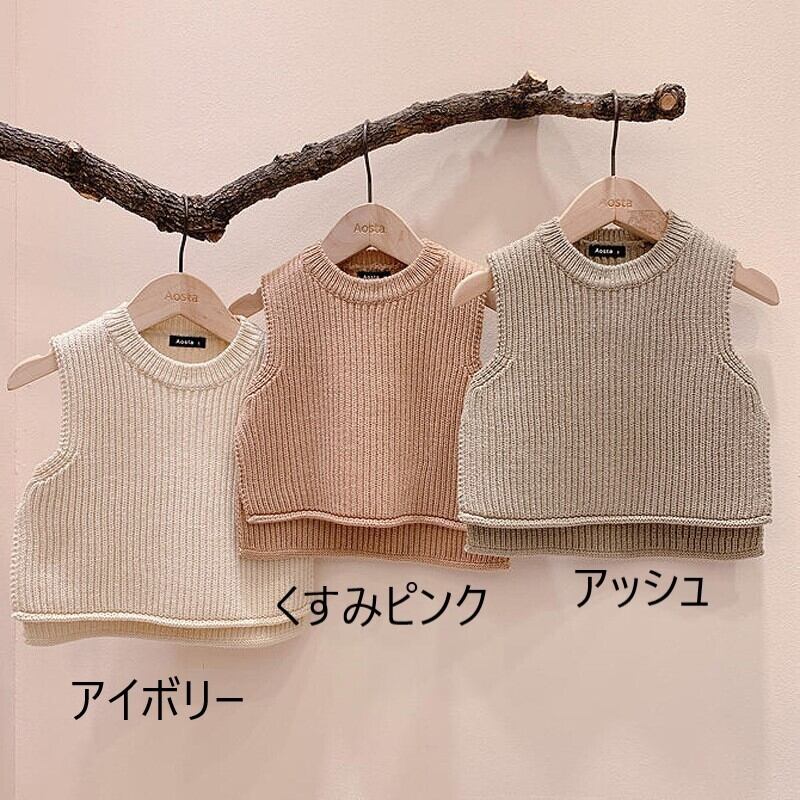 【予約商品】人気商品!着回し抜群ベスト くすみカラーシンプルニットベスト キッズ 秋 羽織 ベスト ナチュラル カジュアル おしゃれ 重ね着 韓国ベビー服 韓国 韓国子供服 防寒 赤ちゃん 男の子 女の子 ピンク ベージュ アイボリー グレー