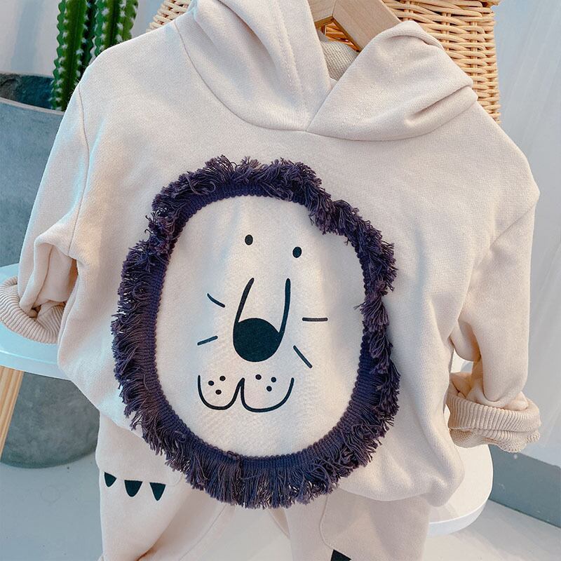 【予約商品】2点セット ライオン柄 アニマル セットアップ カジュアル 長袖 トレーナー パーカー シンプルなデザイン 男女兼用 可愛い 秋 冬 トップス ベビートップス 可愛らしさ満載 男の子 ベビー服 シンプル