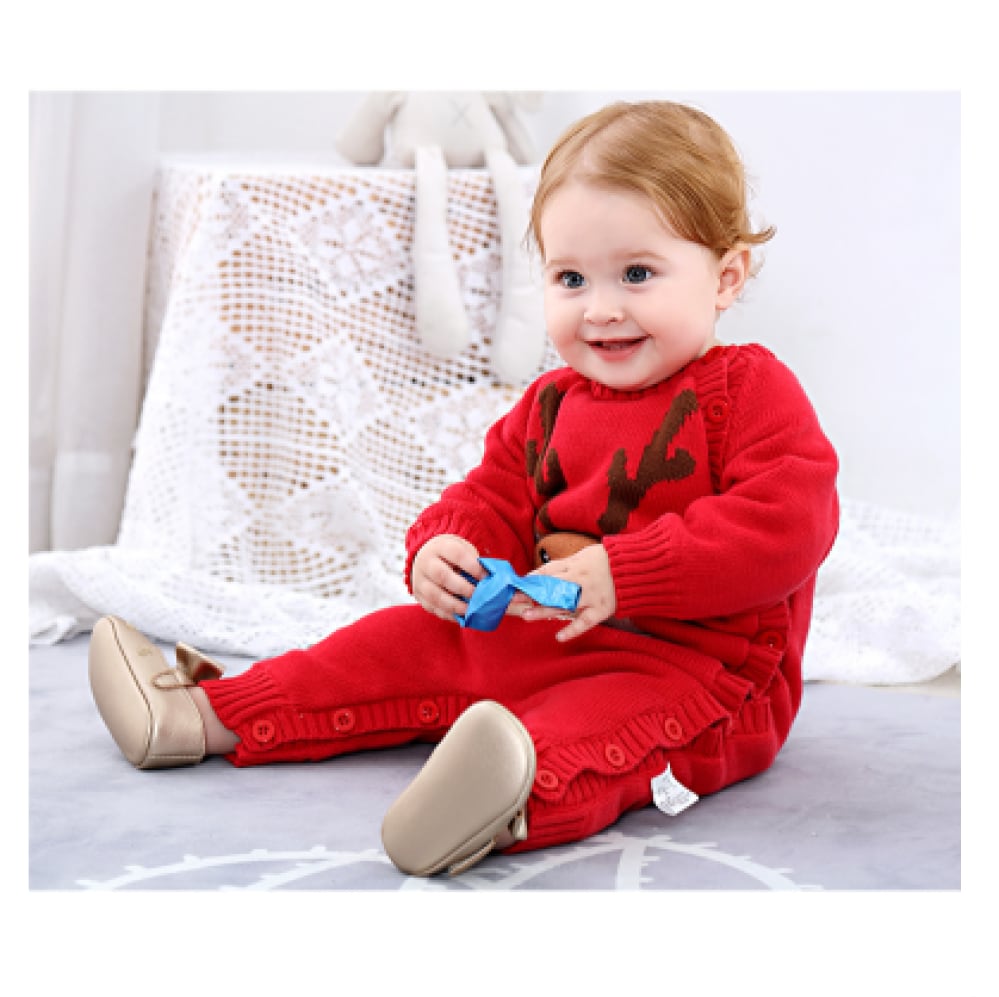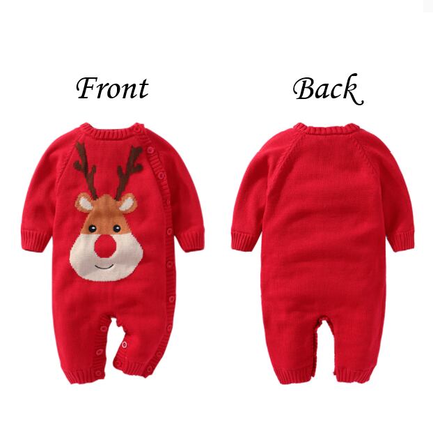 【予約商品】ベビー ロンパース 新生児 ニット 赤ちゃん エルク 鹿 トナカイ ベビーセーター お揃いクリスマス コスチューム レッド丸玉 着ぐるみ 肌着 子供服 秋冬可愛い 女の子 男の子 大人気 コスプレお出かけ用 記念撮影用 年賀状用 66cm 73cm 80cm 90cm