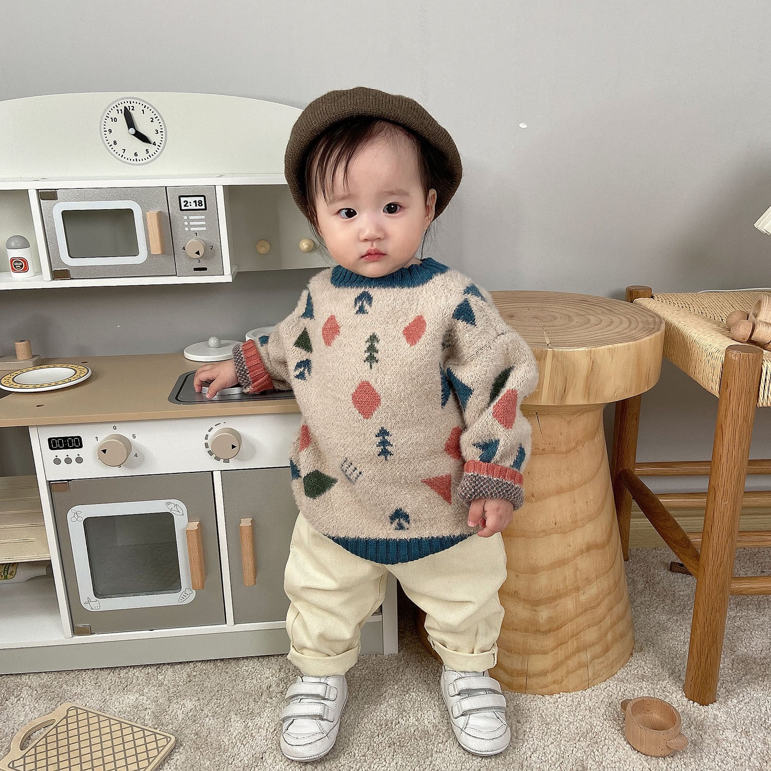 【予約商品】 セーター クルーネック 送料無料ニットセーター 長袖 クルーネック ラウンドネック アーガイル柄 ボア切り替え 子供用 キッズ トップス リブ仕様 防寒 寒さ対策 暖かい あったかい ぬくぬく 冬 菱形 幾何学模様 おしゃれ 可愛い かわいい 女の子 男の子 女児 男児 子供服