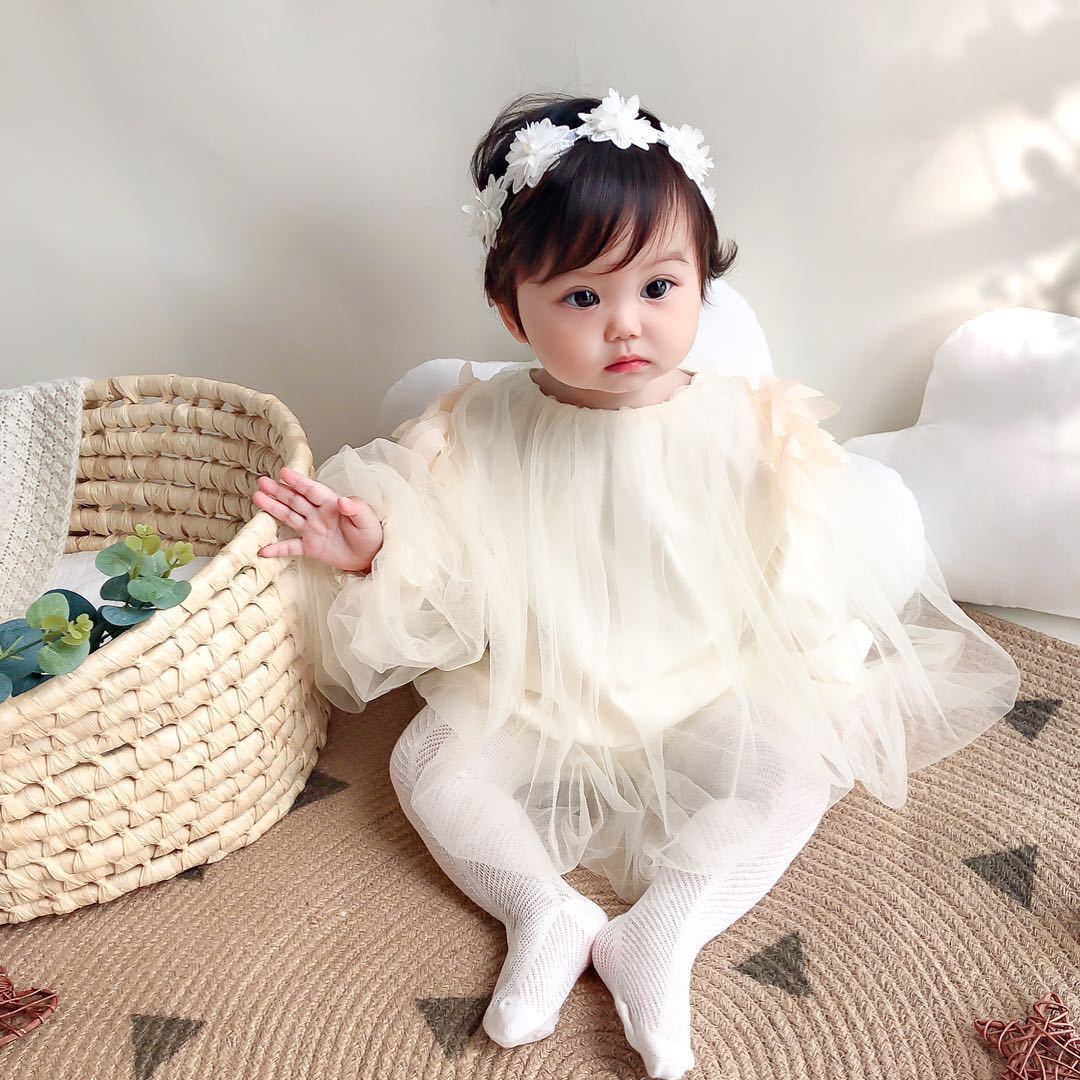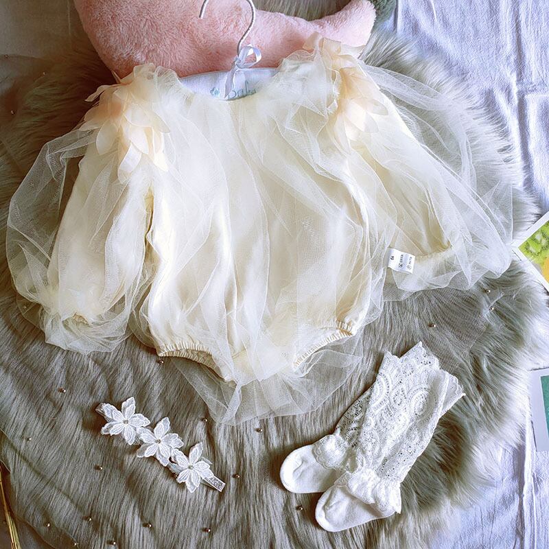 可愛いベビーの記念日の写真撮影、パーティーや発表会、お祝い品やプレゼントやベビーシャワーギフトなどにも大変喜ばれます。 ヘッドドレス、長袖ロンパース、ソックスのセット♪