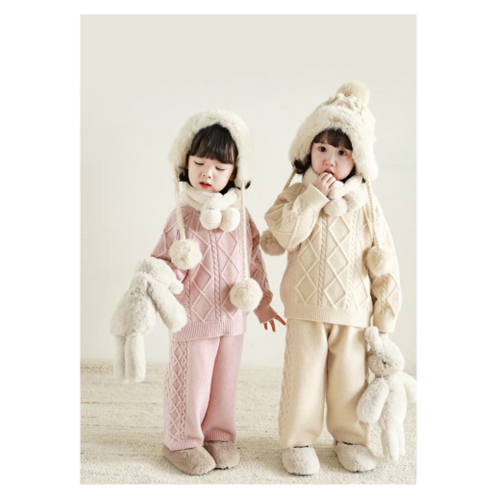 【予約商品】セットアップ ガールズ ボーイズ ユニセックス カジュアル キッズ セットアップ 冬 ニット パンツ 秋冬 女の子 男の子 韓国 子供服 グレー ブラウン ホワイト ピンク ジュニア 韓国子供服 80 100 110 120 130 ニットセットアップ