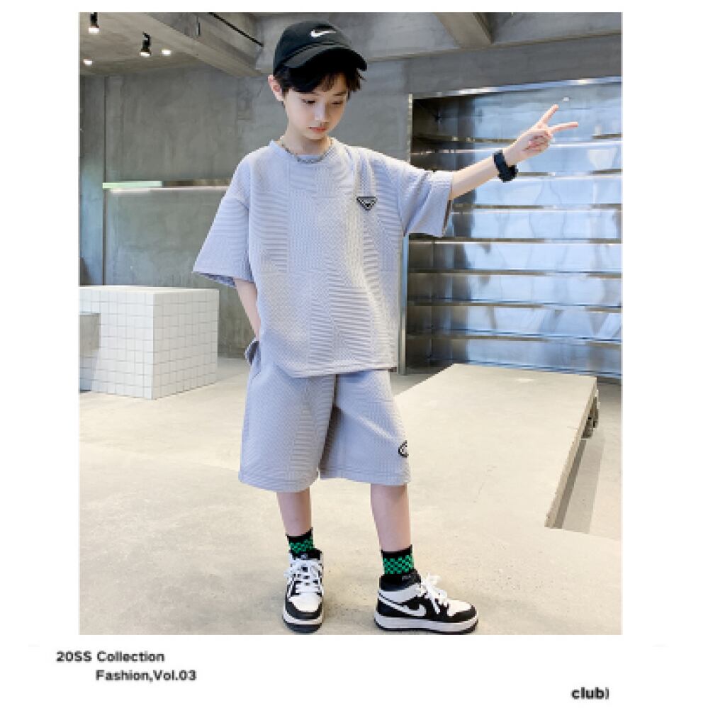 【予約商品】韓国子供服 セットアップ 男の子 夏服 カジュアル ゆったり 上下セット 半袖 Tシャツ + ショートパンツ キッズ ボーイズ かっこいい 2点セット ファッション 夏着 運動 お出かけ 通学着 グレー グリーン ブラウン 120cm 130cm 140cm 150cm 160cm