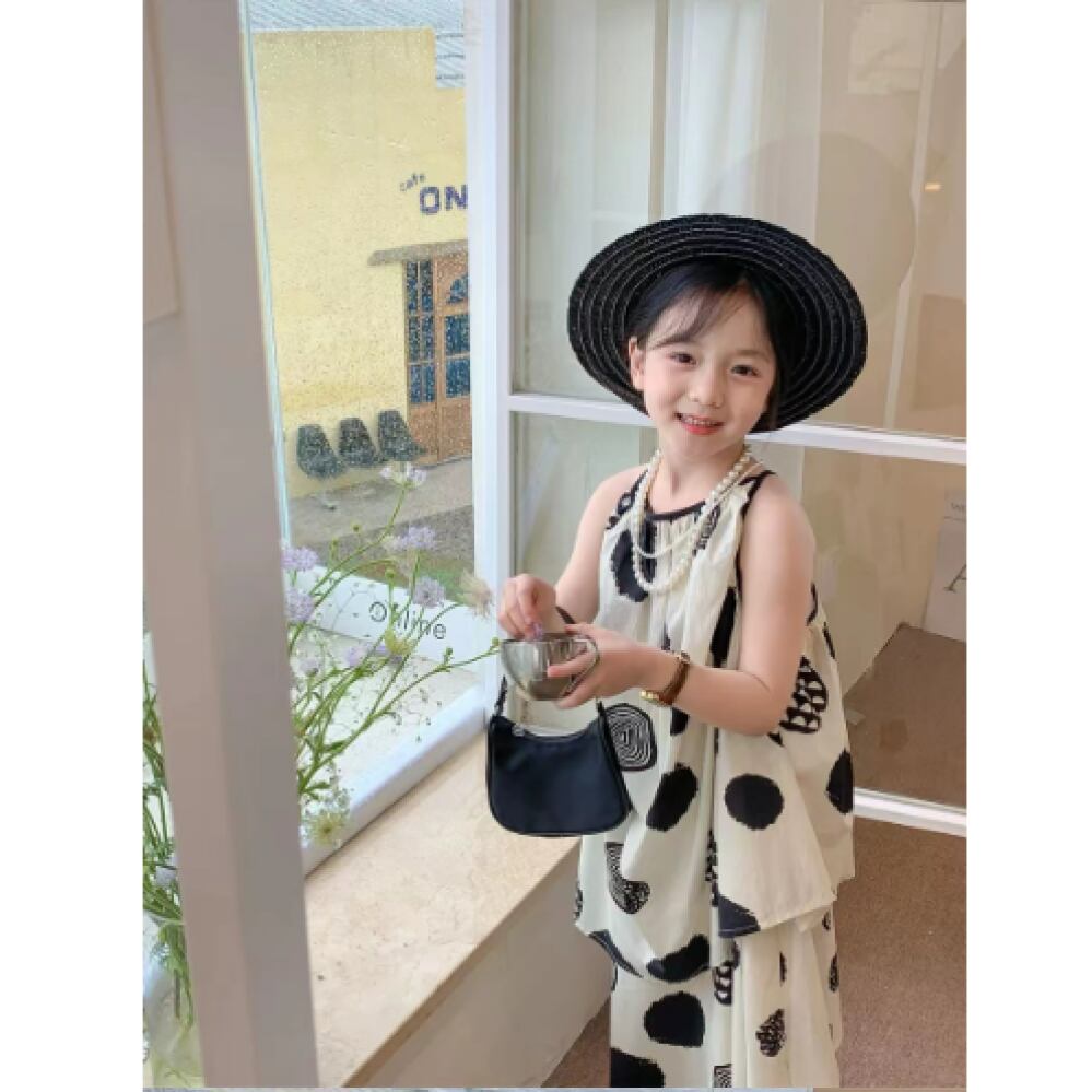【予約商品】キッズ ドット ワンピース 女の子 子供服 夏 キャミワンピ ノースリーブ キャミソール ワンピ ロング マキシ 韓国子供服 ナチュラル カジュアル 秋 夏服 100 110 120 130 140 リラックスキャミワンピース