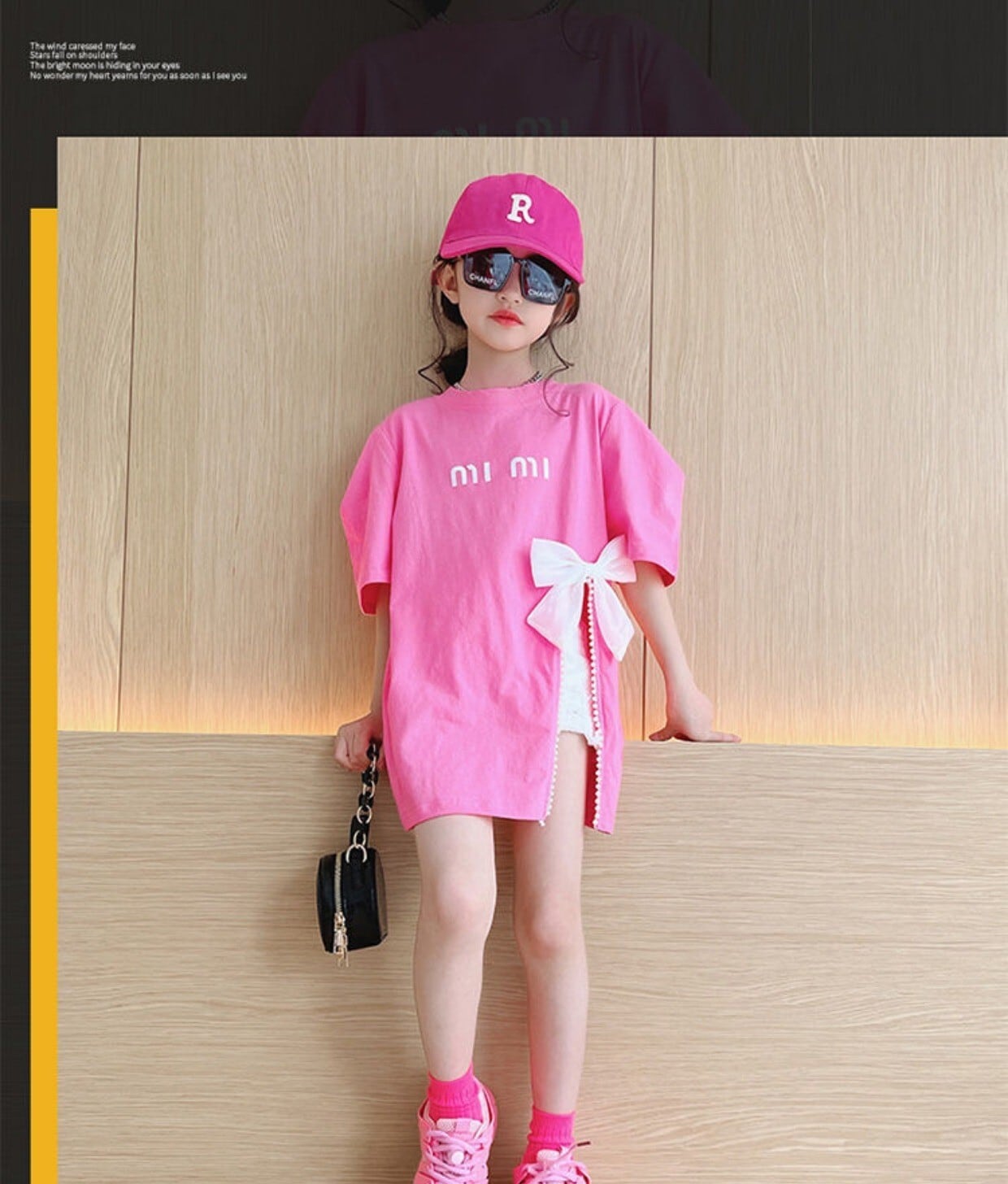 【予約商品】 リボン スリット Tシャツ ペアコーデ 登園 登校 小学生 幼稚園 保育園 姉妹 双子 男の子 女の子 お誕生日 ハーフバースデー 結婚式 出産祝い お揃い 小学生 キッズ